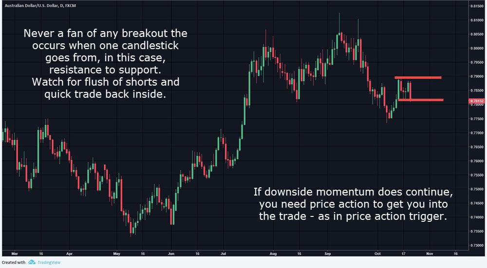 AUDUSD – Monday saw the break with a quick retrace back inside catching shorts off guard, as mentioned on the setup chart I posted, as the day continued on. Price action short setup for 170 pips