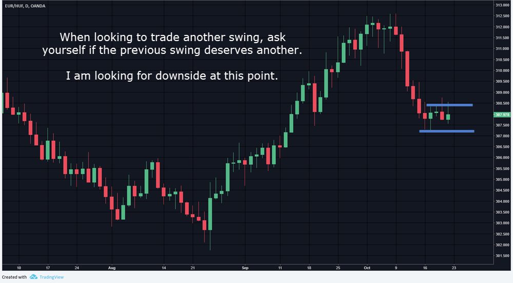 EURHUF – Strong retrace on this pair from consolidation kept me away. Week did end with a strong drop however.