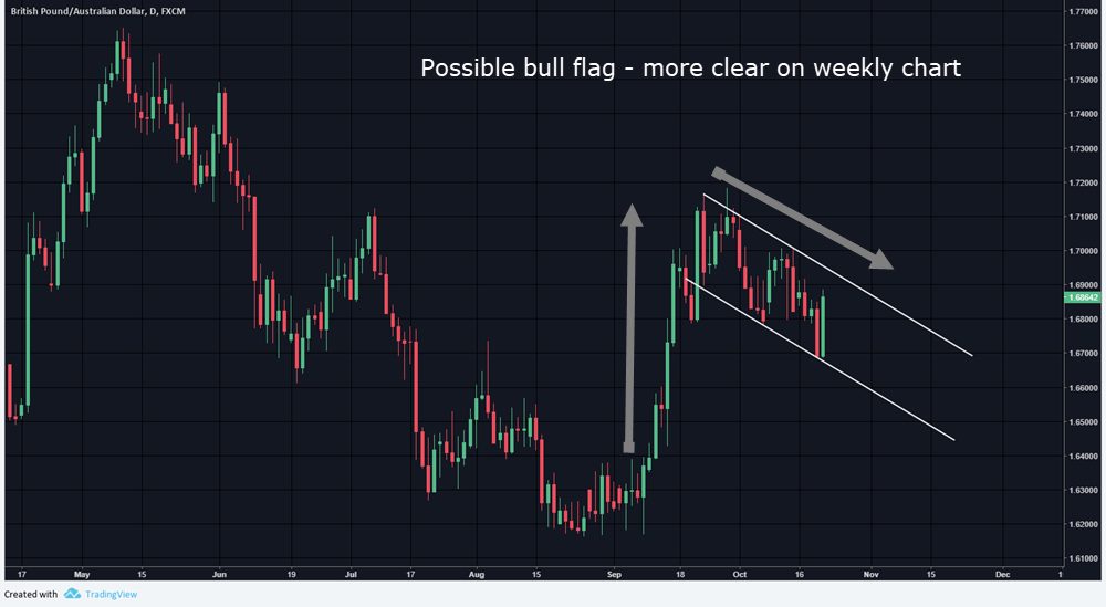 GBPAUD – Bull flag was in play as noted. Resistance trend line did not soundly rejected as other tests. 270 pips