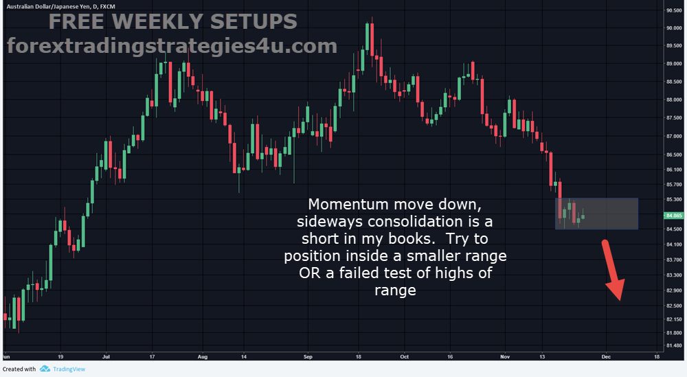One thing you must keep in mind is that some of these setups that get posted last longer than a week and some remain in play the following week. The most recent example is the NZDUSD that was posted a few weeks ago. There was no closing price action that indicated an exit until the consolidation this week. The trade was up 125 pips from our four hour entry.