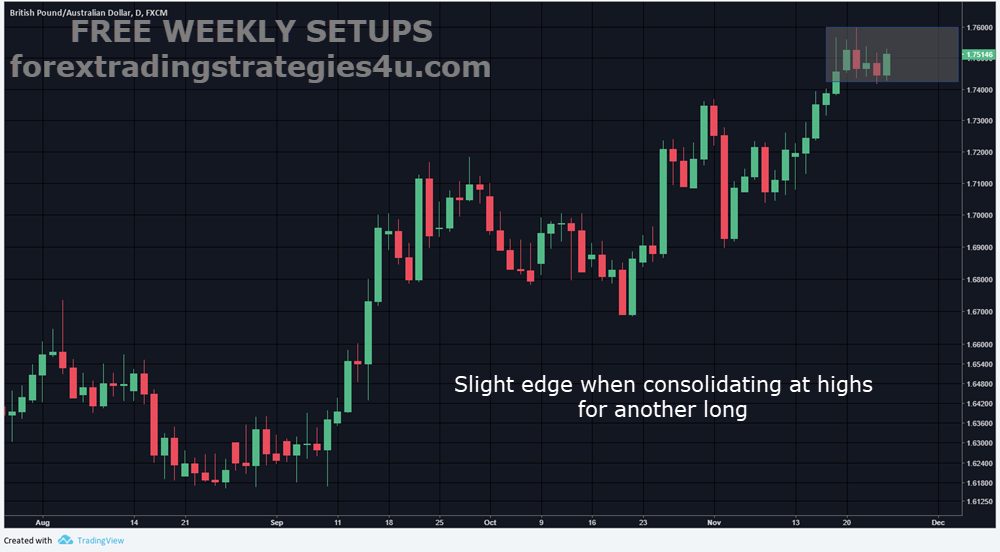 GBPAUD – Consolidation of highs indicated upside break. Price did so for 300 pips.