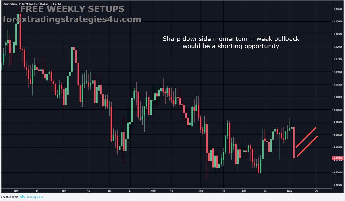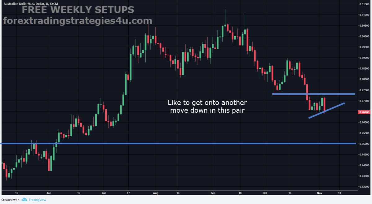 AUDCAD – A pullback can be considered a consolidation in price. A range can be considered a consolidation in time. Although the chart I posted had a bear flag consideration, always infer that I generally mean a consolidation in any form. I know some of you understand that but wanted to be clear. Shorting the breakdown gave 50 pips