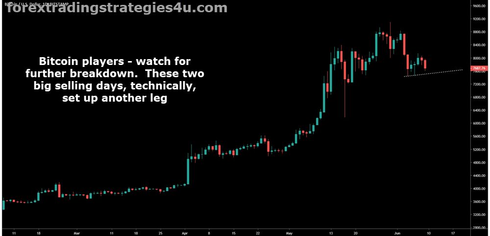 BTCUSD – No trade in this crypto and longs that didn’t read the exhaustion move took a large one day hit.