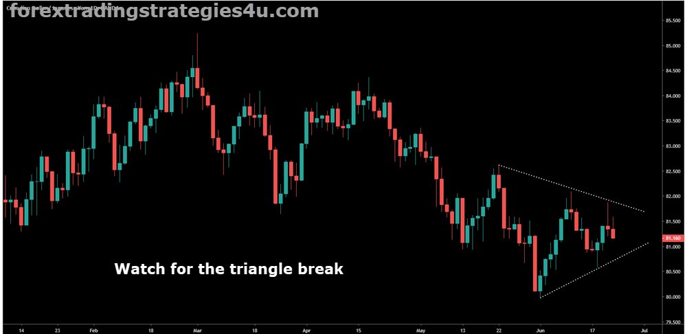 CADJPY – 100 pip jump from the triangle and this move shows that fading the break from a triangle is never a good idea