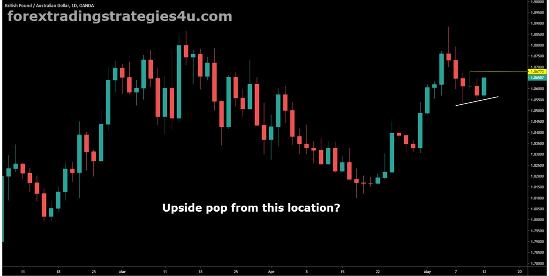 GBPUSD – We wanted to see upside strength for a long which means weakness for a short. Market broke through the small range and the retest was lazy. We also had basing under the now broken support. The failure to break back above is a sign for a short. Position on a breakout of the small range on the four hour chart for 223 pips