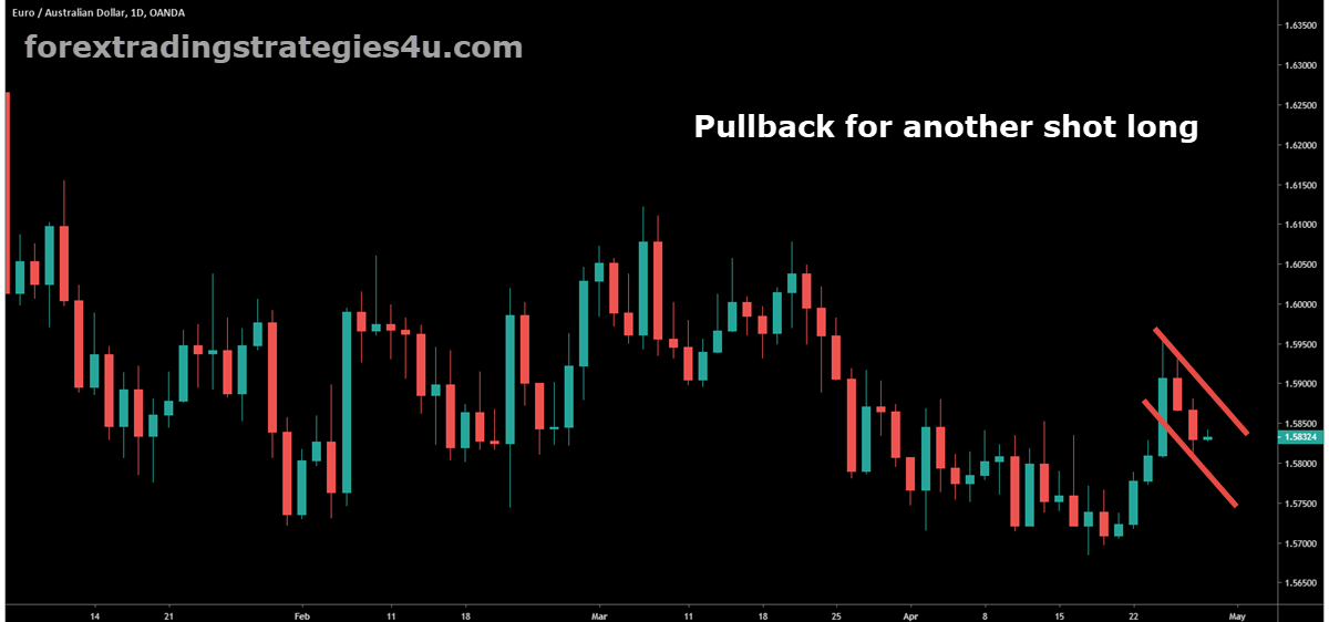 EURAUD – 132 pips upside after the pullback bottomed out in what was a simple pullback trade