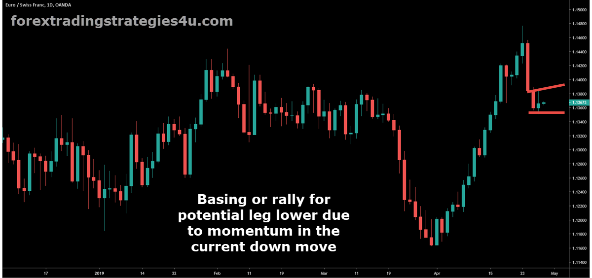 EURCHF – We expected a rally as noted on our setup chart and then the down move for 49 pips after a consolidation break off the four hour chart